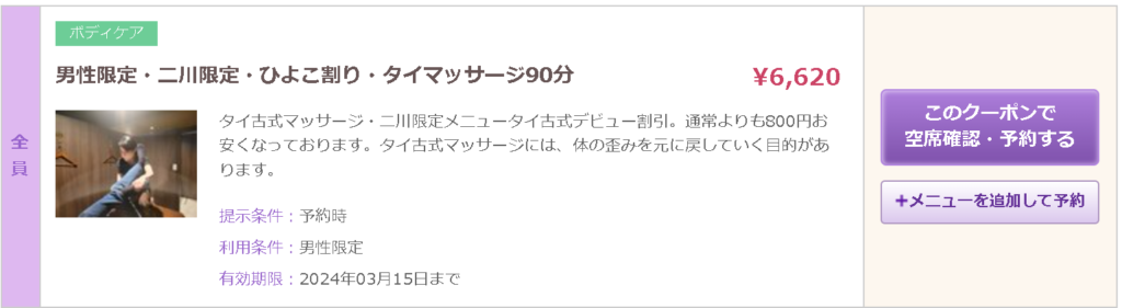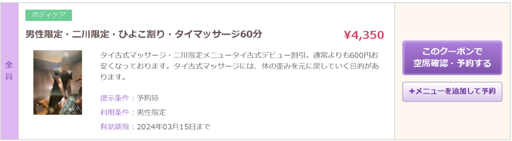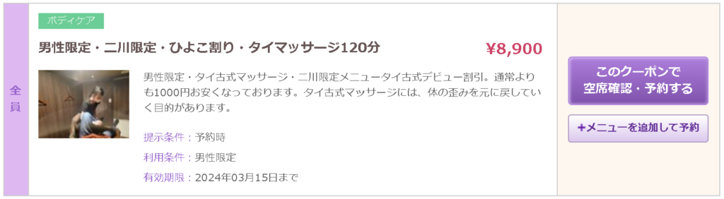 新人、二川デビュー割引です。かなりお得なので、ご予約お待ちしております。
